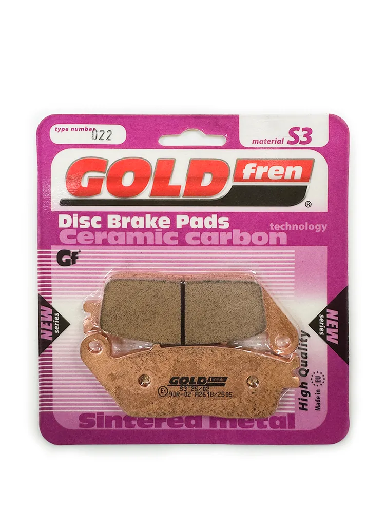 GOLDfren производит только металлокерамические тормозные колодки на мотоциклы и квадроциклы. Cпечённые тормозные колодки для мотоцикла, содержат металлокерамические и керамически-углеродные фрикционные материалы, которые обеспечивают меньше пыли и обеспечивают гораздо более тихое торможение.