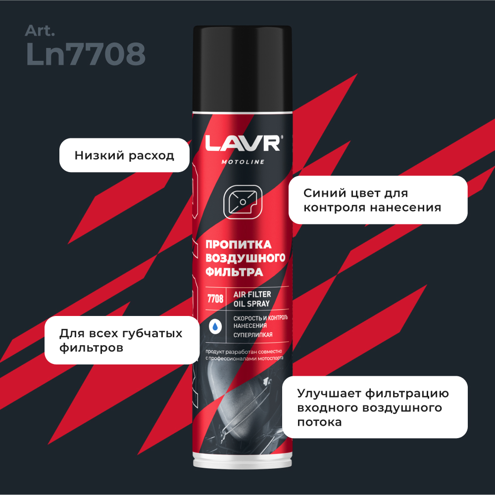 Перед пропиткой очистить фильтр при помощи Очистителя воздушного фильтра LAVR Ln7706 и высушить.