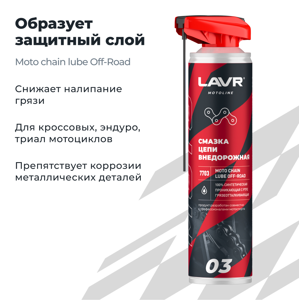 Синтетическая смазка с PTFE для всех видов внедорожных цепей. Антифрикционные добавки с высокой проникающей способностью защищают звенья, ролики, сальники цепи от ударных нагрузок. Неклейкая основа предотвращает налипание песка и грязи. Смазка специально разработана для продолжительной эксплуатации мототехники по пересеченной местности. Нейтральна к резиновым уплотнениям цепи.